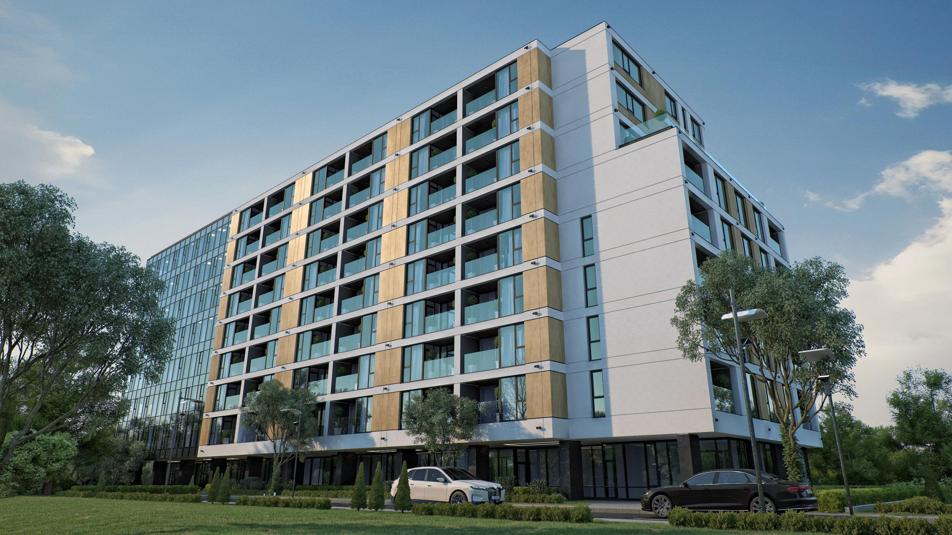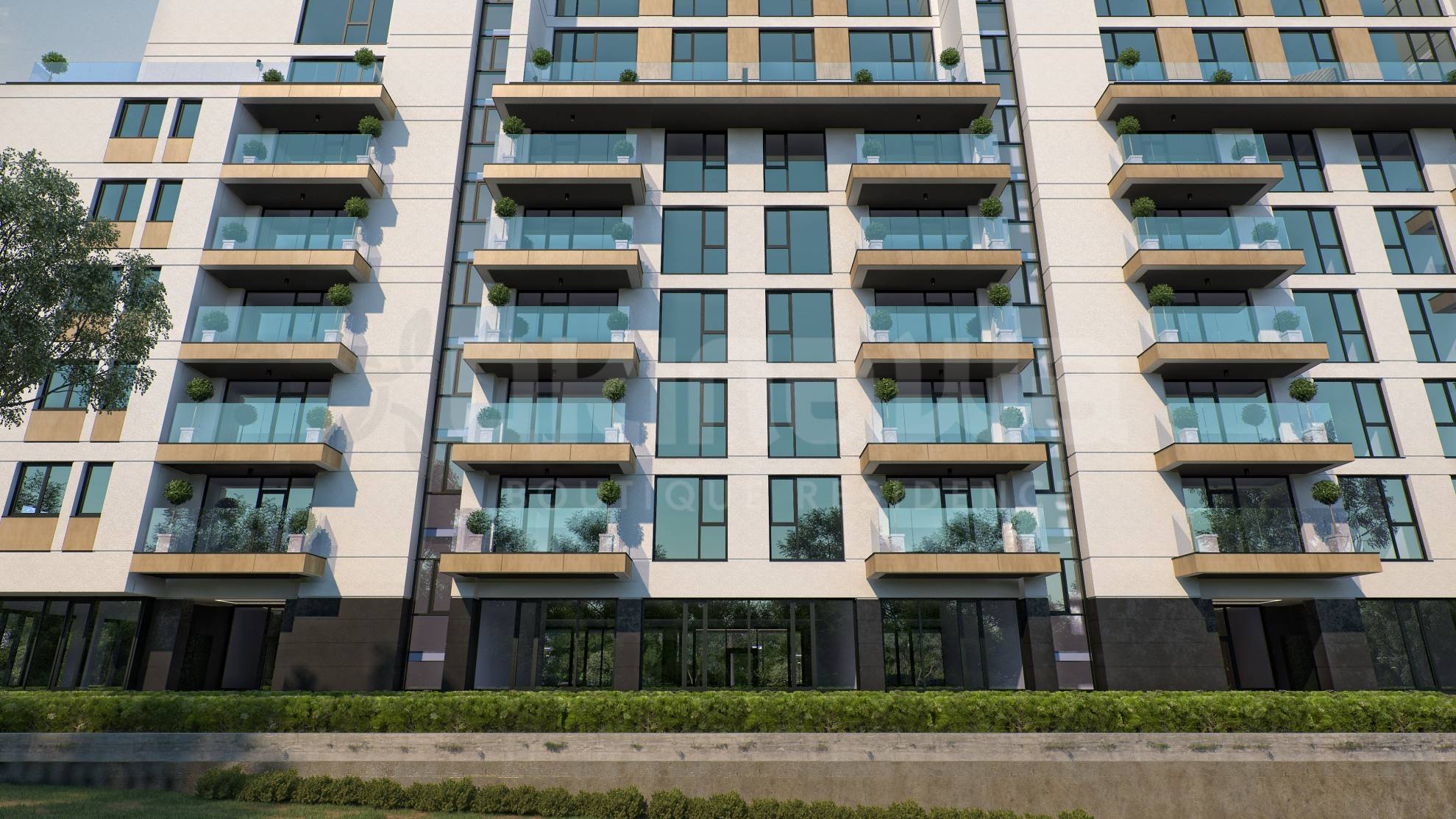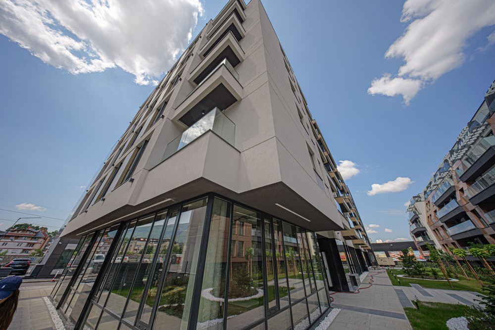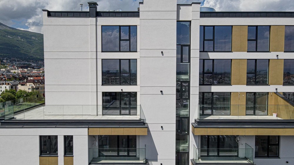 Високотехнологична, дишаща фасада, представляваща комбинация от топлоизолационна система на Baumit с минерална мазилка по архитектурен детайл от експандиран полистирол EPS 10 см и вентилируема, окачена върху алуминиева конструкция, облицована с керамични плочи на водещия италиански производител Laminam, от колекцията Seta, със златист мотив. Плочите Laminam запазват своите спецификации, дори когато са изложени на топлина, UV лъчи и замръзване. Също така са устойчиви на удари, петна и драскотини. В окачения фасаден пакет ще бъде вградена изолация от 10 см каширана каменно-минерална вата, марка ROCKWOOL с пародифузна и ветрозащитна мембрана, която има плътност 50 кг/м³, минимални топлозагуби - λ = 0,035 W/mK. Вентилируемата фасада осигурява отлична топлоизолация и паропропускливост, задържа влагата извън сградата, намалява топлинните загуби през зимата и проникването на горещ въздух през лятото, повишава хидроизолацията и шумоизолацията, защитата срещу сняг, дъжд и конденз откъм вътрешните страни на стените на сградата.