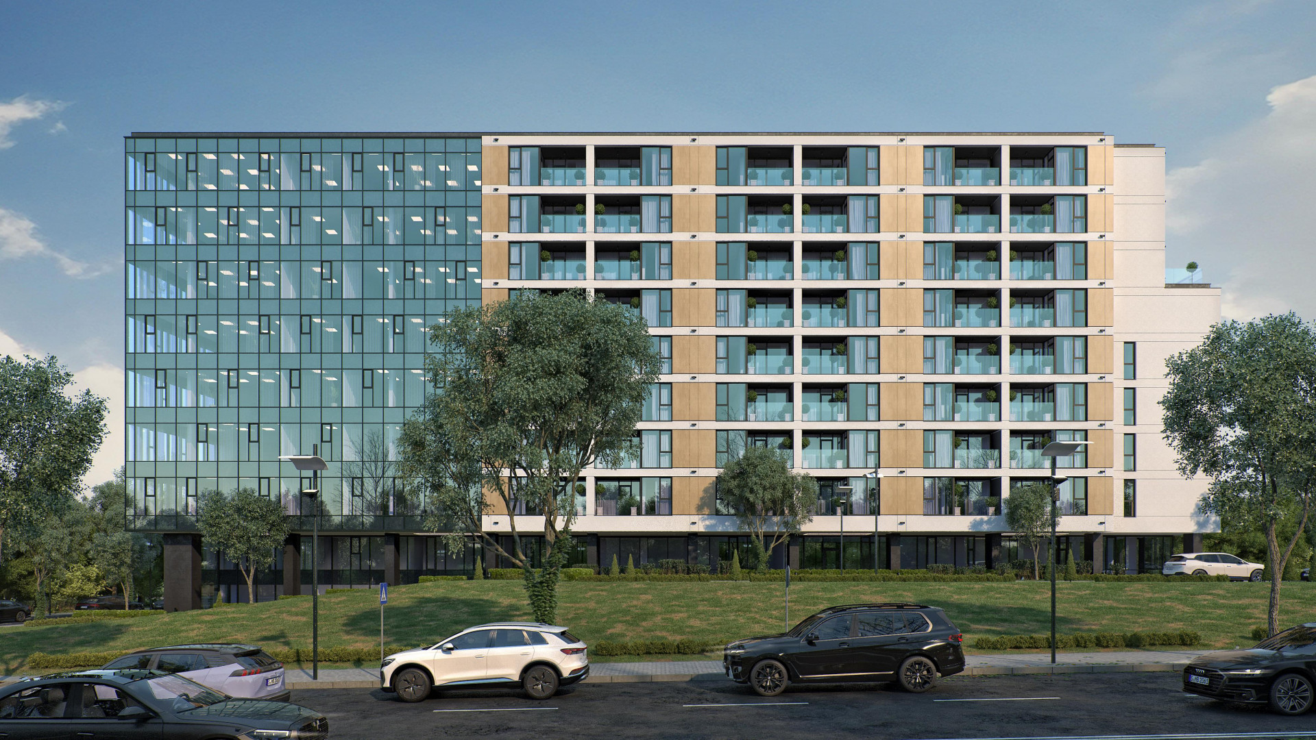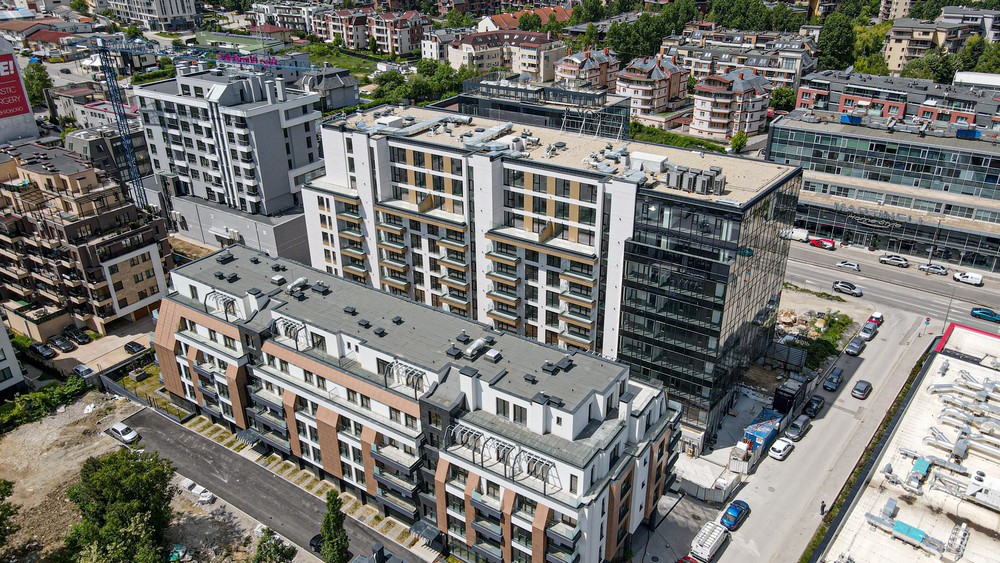 | ТИП КОМПЛЕКС | Многофункционална сграда с жилищна част, офисна секция, магазини на партерно ниво, подземни паркоместа, складове-мазета |