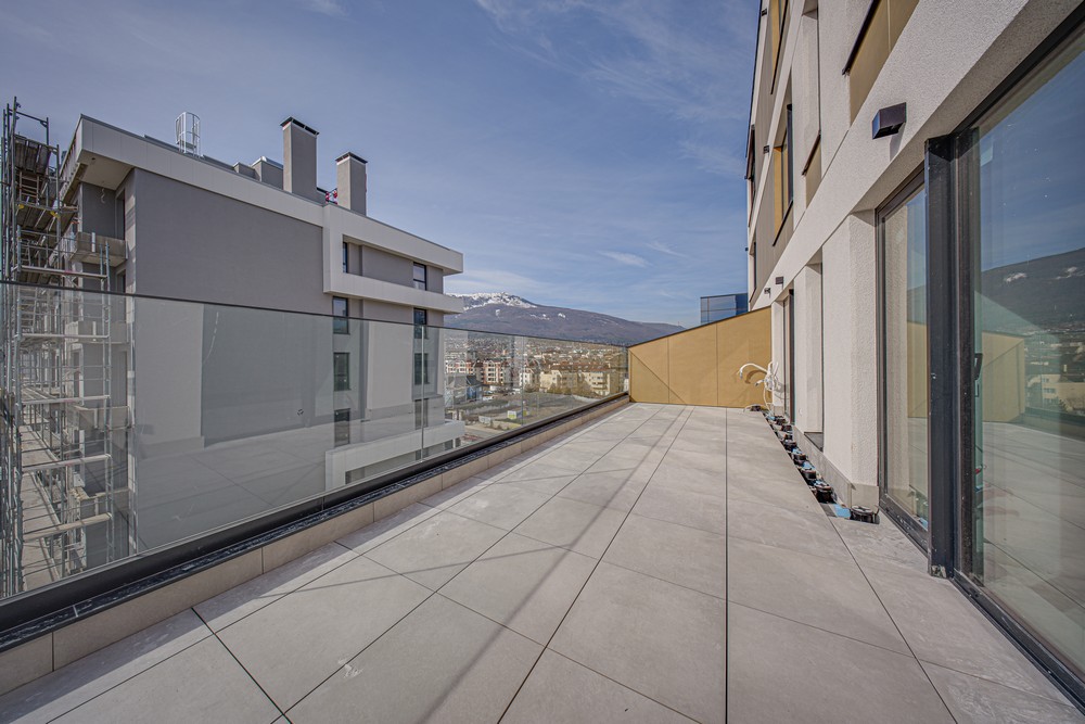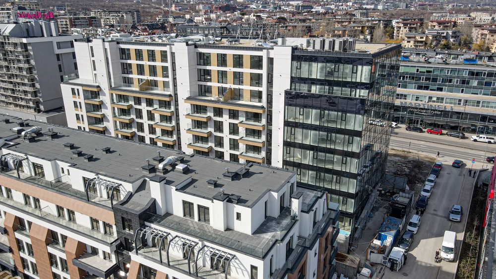 Покривът на сградата е тип плосък покрив. Технологията на изграждане на покрива предвижда полагане на 14 см слой XPS, след което се прави армирана замазка за отвеждане на водата чрез воронки. Над нея се изгражда пародренаж с материал Gemini Vapor (парна бариера) за по-добра пропускливост на въздух и отвеждане в атмосферата на остатъчната влага. Следва полагане на TPO мембрана Köster. Като завършек на покрива ще бъде положен чакъл от обли камъни за подобрена топлоизолация и дълготрайност.