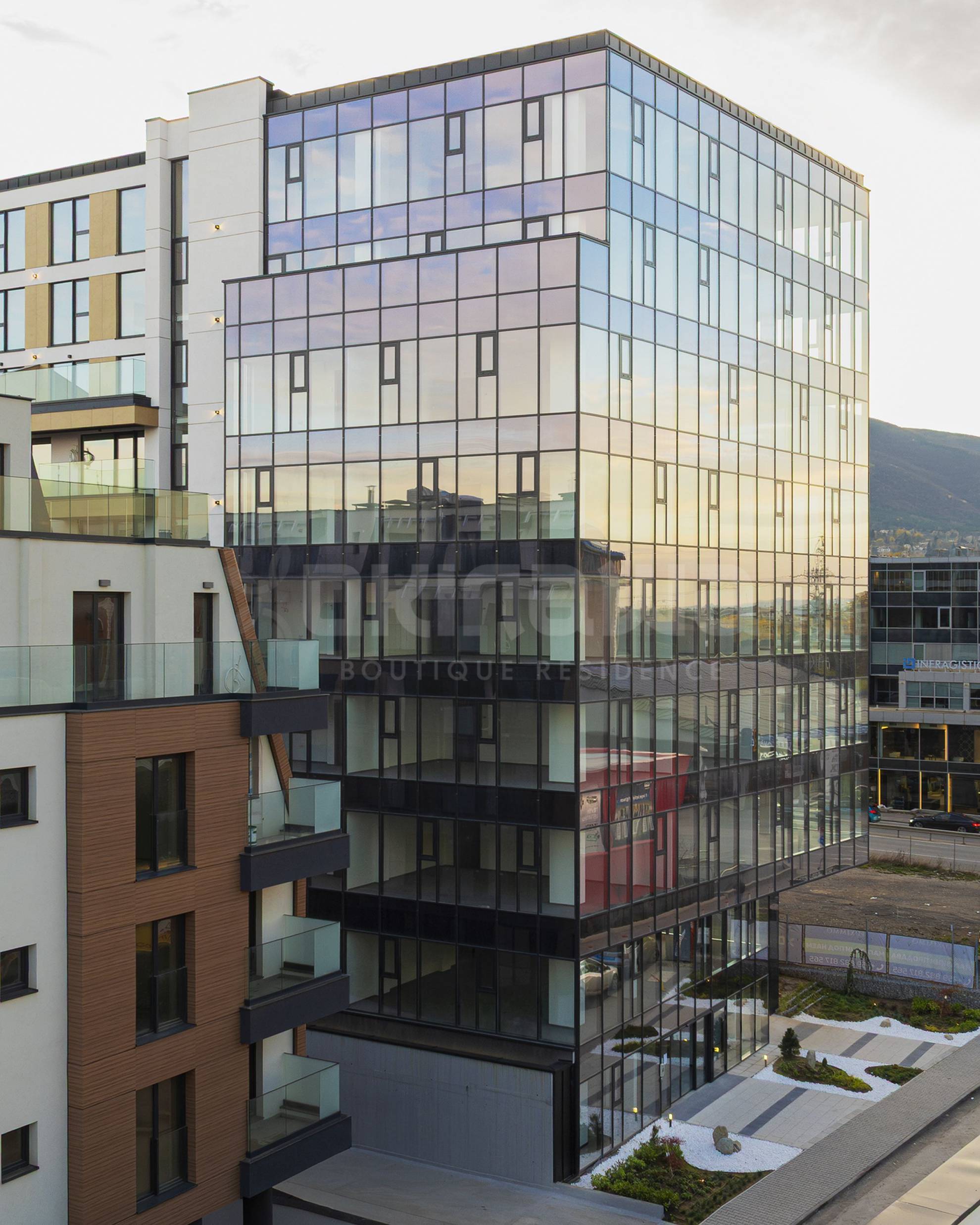 Избраният стъклопакет се отличава с изключителни характеристики — висока светлопропускливост, отличен соларен фактор (0,3556) и най-ниски нива на топлопреминаване (1,3 W/(m²K)). Тези характеристики допринасят за максимално пестене на енергия както за отопление през зимата, така и за климатизация през лятото. В същото време стъклопакетите са избрани съгласно ориентацията на сградата с необходимия соларен фактор за непрегряване на помещенията и също така с максимална светлопропускливост за оптимален комфорт в помещенията през всеки сезон.