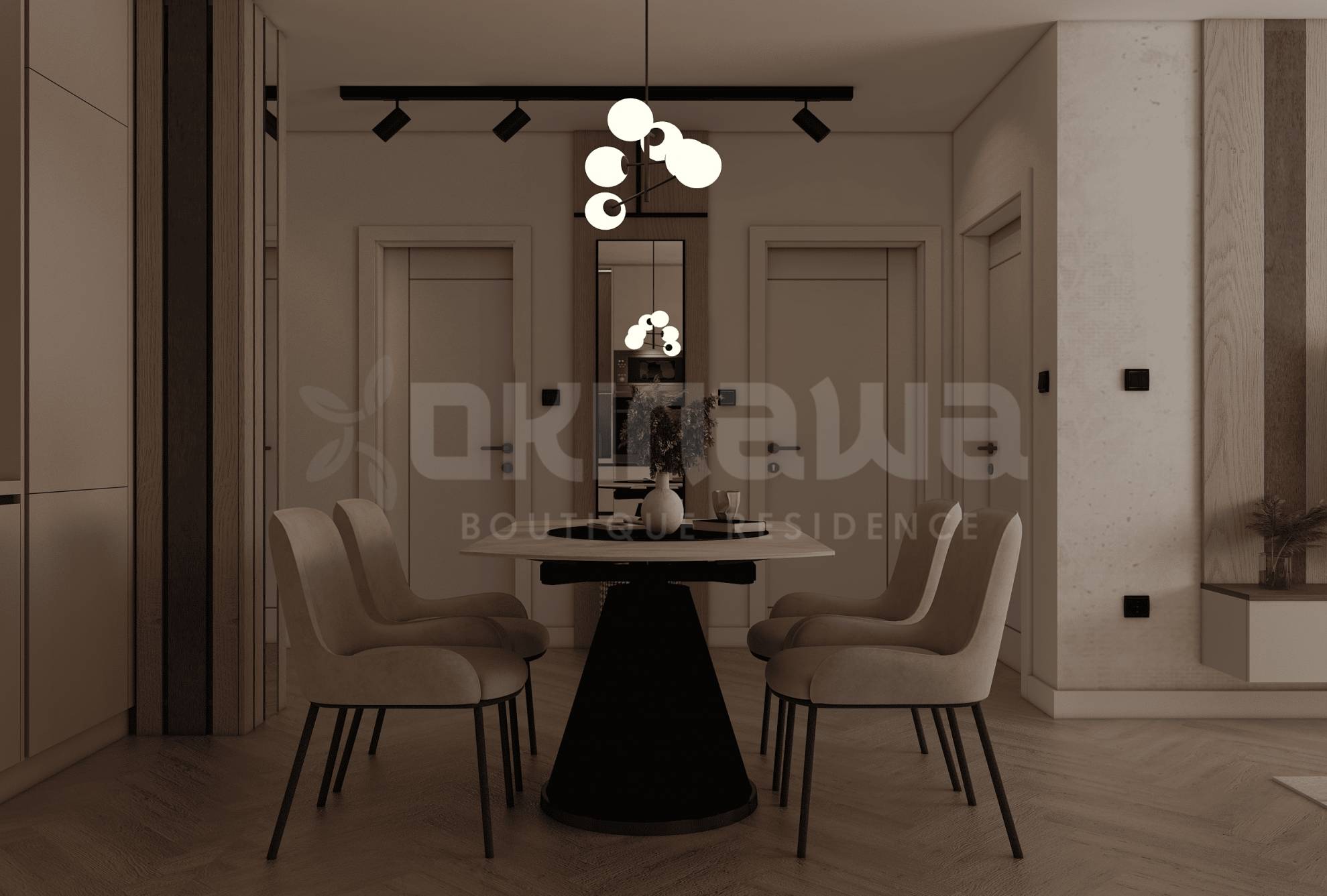 Boutique Residence - Okinawa запазва оптимизма, изисква любопитство към технологиите на бъдещето и начина, по който една сграда оказва влияние върху човешкото тяло и сетива. Концепцията ѝ е подчинена на устрема към комфорт и здравословен начин на живот в градска среда и много личен диалог с нея, целящ правилното позициониране на модерния човек в нея. Без да създава прекалено вълнение, още от пръв поглед архитектурата на сградата носи спокойствие и усещане за приятна среда със своите правилни форми и топло цветово решение. Boutique Residence - Okinawa не е потопена в актуалността на момента. Тя е адресирана към устойчивите и непреходни ценности и важни необходимости, които всяка емблематична сграда трябва да дава на своите обитатели.
