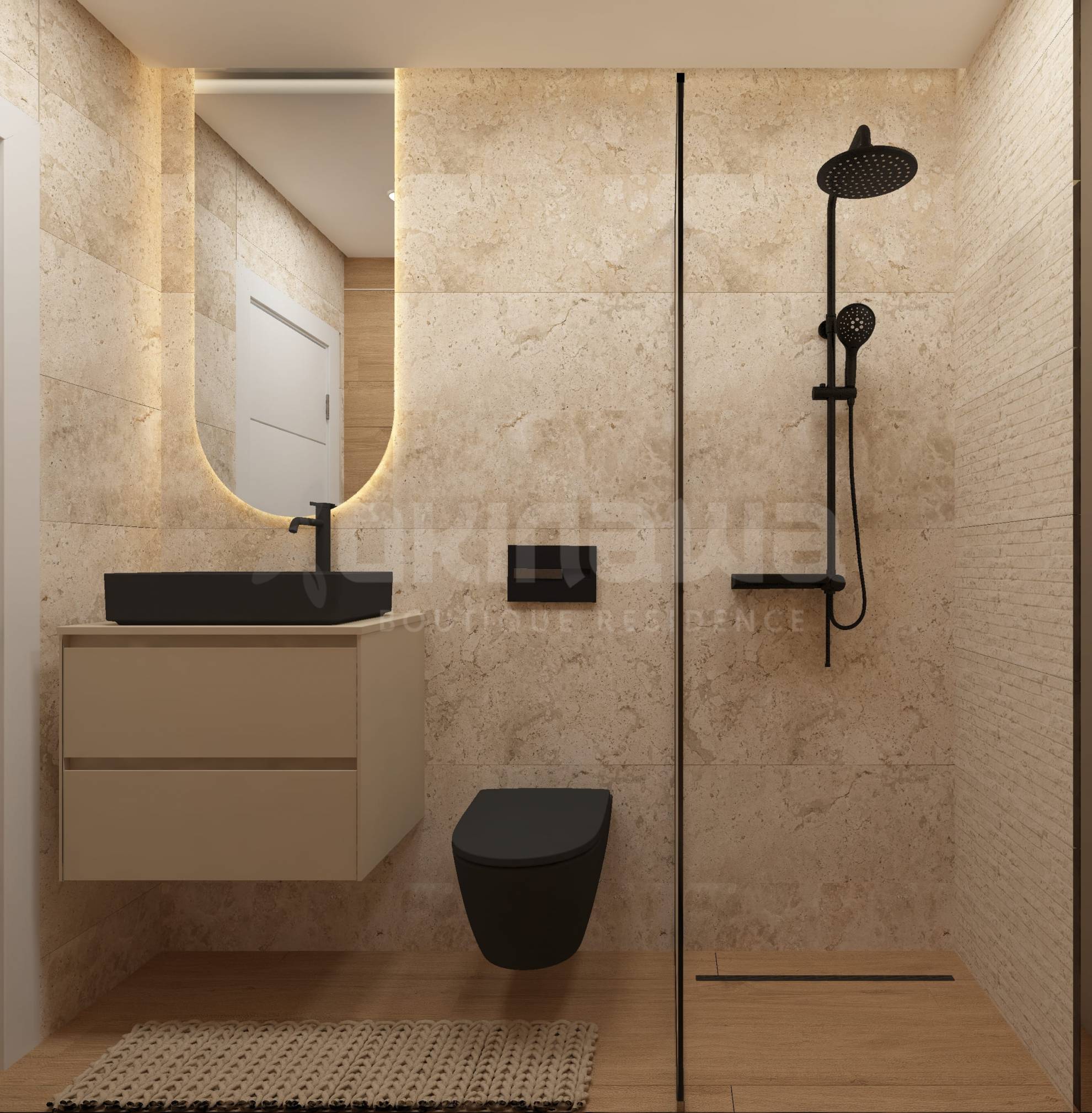 Всички апартаменти в сградата се издават стандартно на купувачите, завършени по БДС, тоест на т.нар. ниво “шпакловка и замазка“. Всички инсталации в жилището са изградени и положени, в т.ч. електрическа инсталация, ВиК, тръбни разводки за отопление и климатизация за индивидуален газов котел, термопомпа или мултисплит система с фреонови климатици, според предпочитанията на купувача. Ще бъдат монтирани стойки за външните тела на предварително определени за това, дискретни места по балконите, с цел запазване на външната естетика на сградата и нейната фасада. Поставени са контакти и ключове от Schneider Electric. Монтирана италианска блиндирана входна врата Dierre.